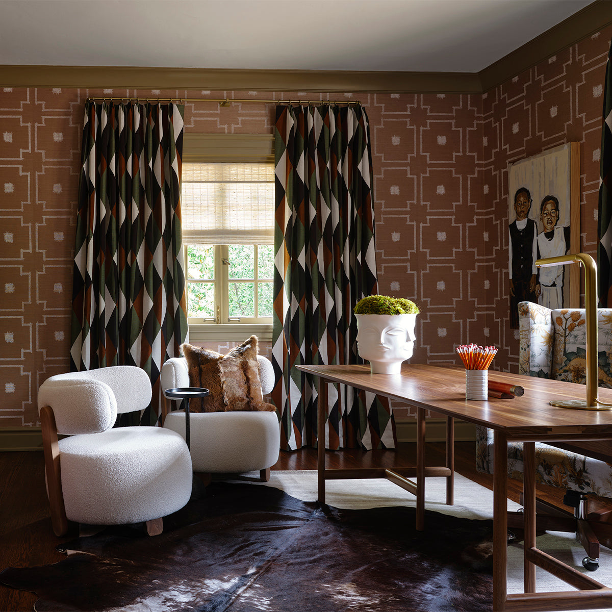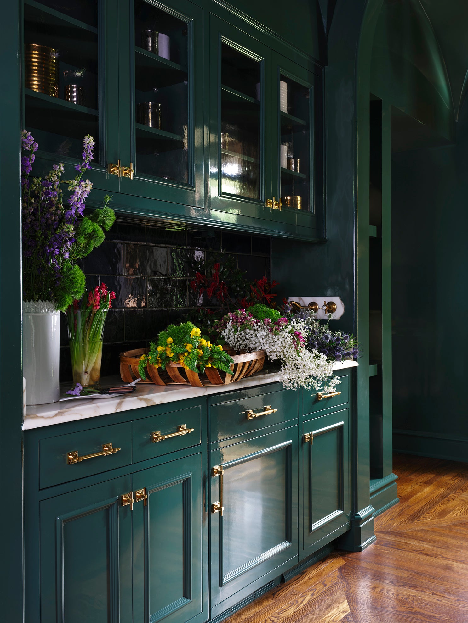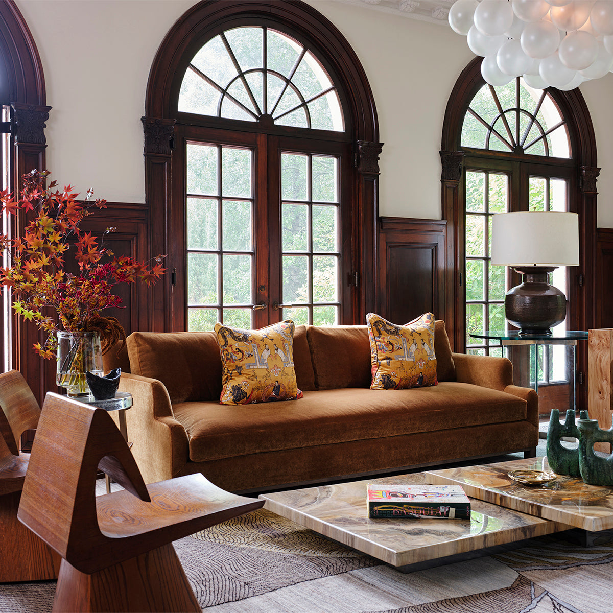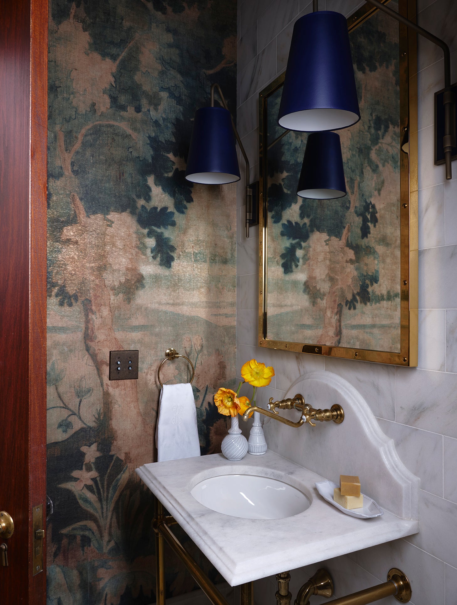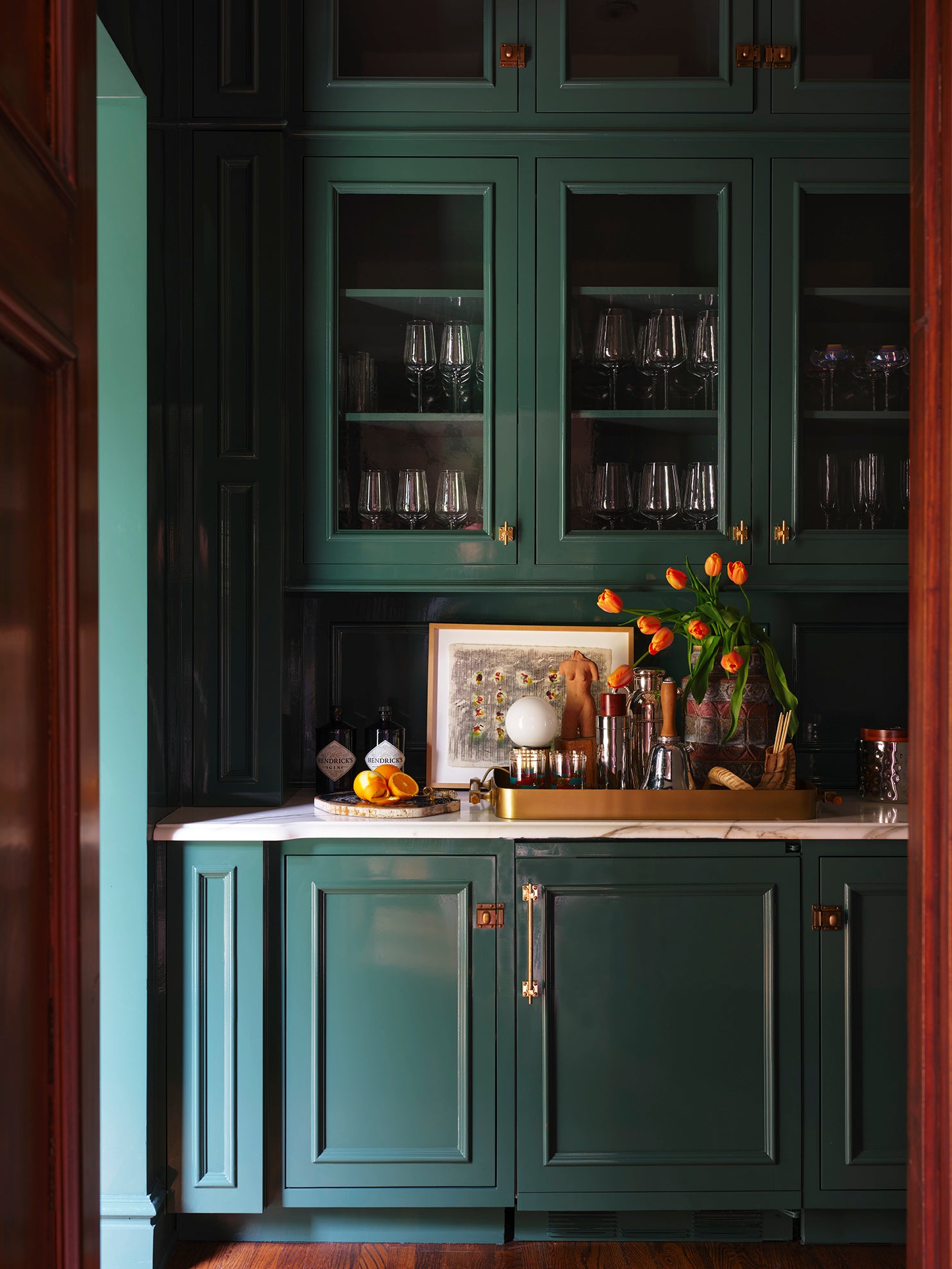 Taking a progressive approach to the home, entertaining became the intention of the front of the home. With a focus on exceptional aesthetic moments - from the custom glass-blown chain light fixture to the hand-painted de Gournay wallpaper - we created an environment ripe for the merriment of hosting and the appreciation of beauty. The private spaces of the home became a relaxing respite for a young family, together creating a home ideal for modern life.
